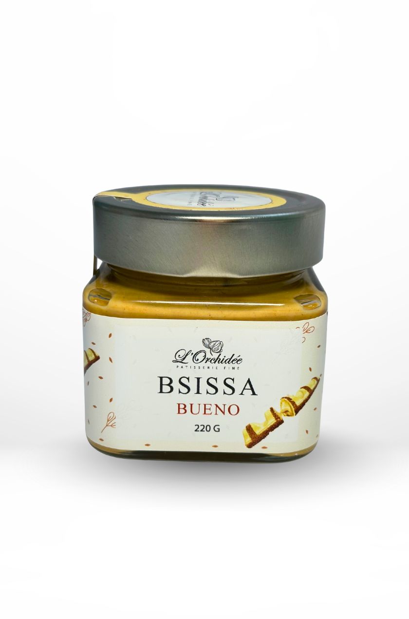 Une bsissa façon Bueno qui marie une pâte Bueno onctueuse à une texture crunchy légère. Un équilibre parfait entre douceur lactée, croustillant gourmand et une saveur irrésistible rappelant le célèbre chocolat, pour une expérience fondante et croquante à chaque bouchée.