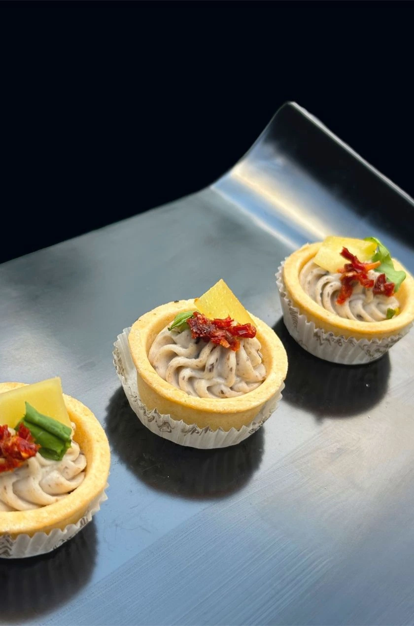 Sous une pâte sablée dorée et croustillante, une mousse onctueuse au parmesan et à la truffe révèle toute sa finesse.